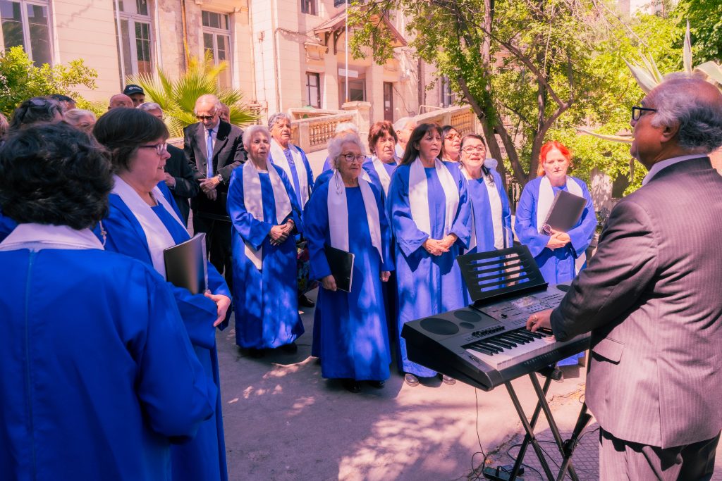 La feria contó con diferentes stands informativos sobre beneficios sociales, el reconocimiento a cuidadoras y cuidadores de usuarios del HCSBA y la presentación artística del coro de personas mayores “Cantar con Alegría” del Departamento de Adulto Mayor de la Municipalidad de Santiago.